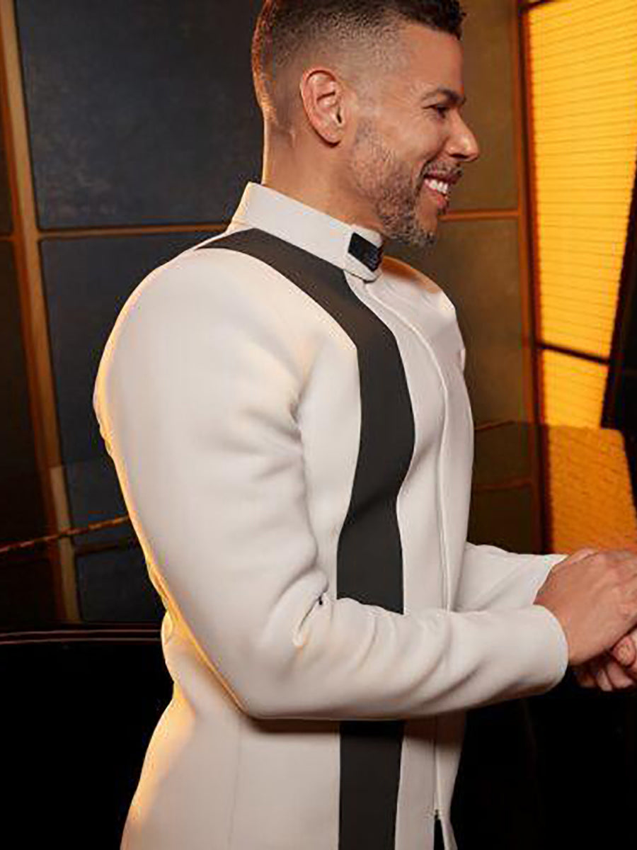 ヒュー・カルバー スター・トレック ディスカバリー ホワイト コットン ジャケットで未来を体感しましょう。このジャケットは、象徴的なスター・トレック ディスカバリーシリーズからインスピレーションを受け、ヒュー・カルバー役のウィルソン・クルーズが着用しています。このジャケットは、耐久性のあるコットン生地のアウターシェルと、快適なビスコースの裏地が特徴です。YKKジッパーでしっかりとフィットし、スタンドカラーが未来的なスタイルのタッチを加えています。オープンヘムの袖口が付いた長袖はクラシックな外観を提供し、アームホール周りのキルティング生地のデザインとシルバーのサイドパネルがユニークなディテールを提供します。胸元には取り外し可能なスター・トレックのロゴが付いており、ファンにもファッション愛好家にもぴったりのジャケットです。