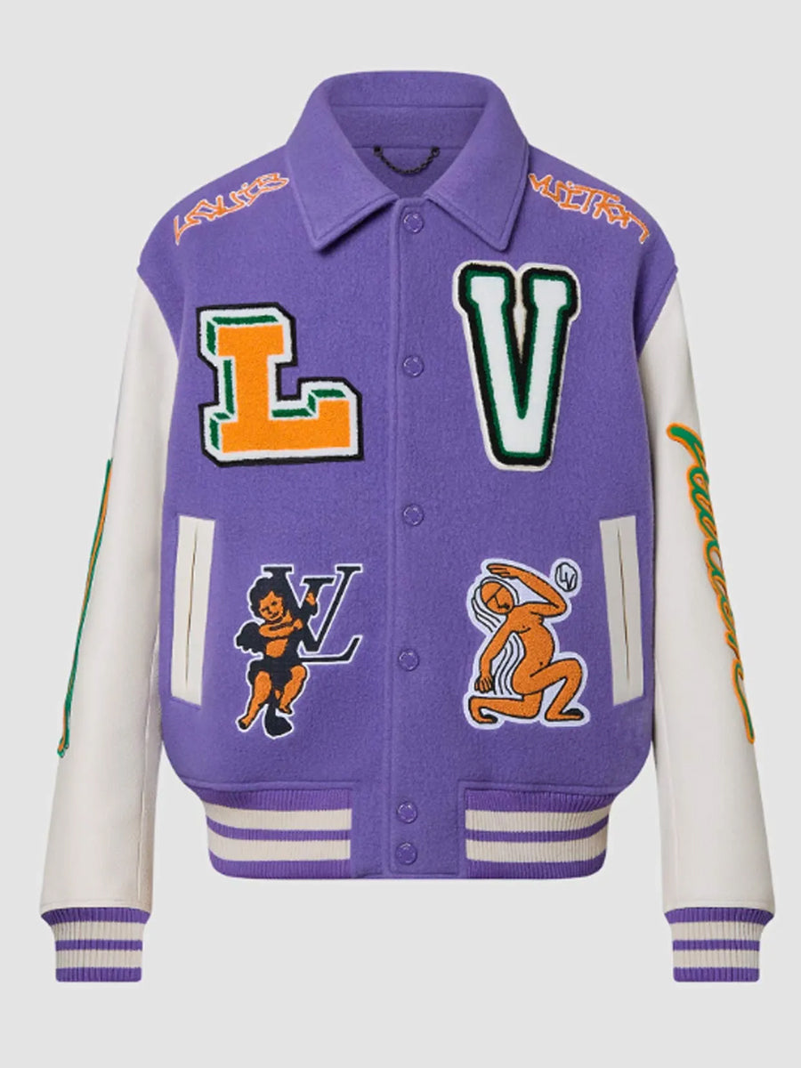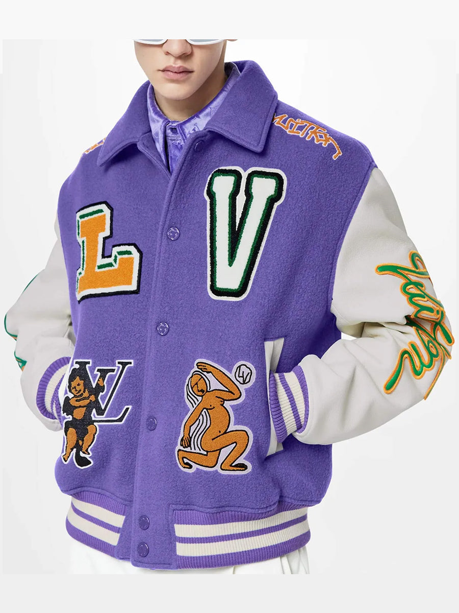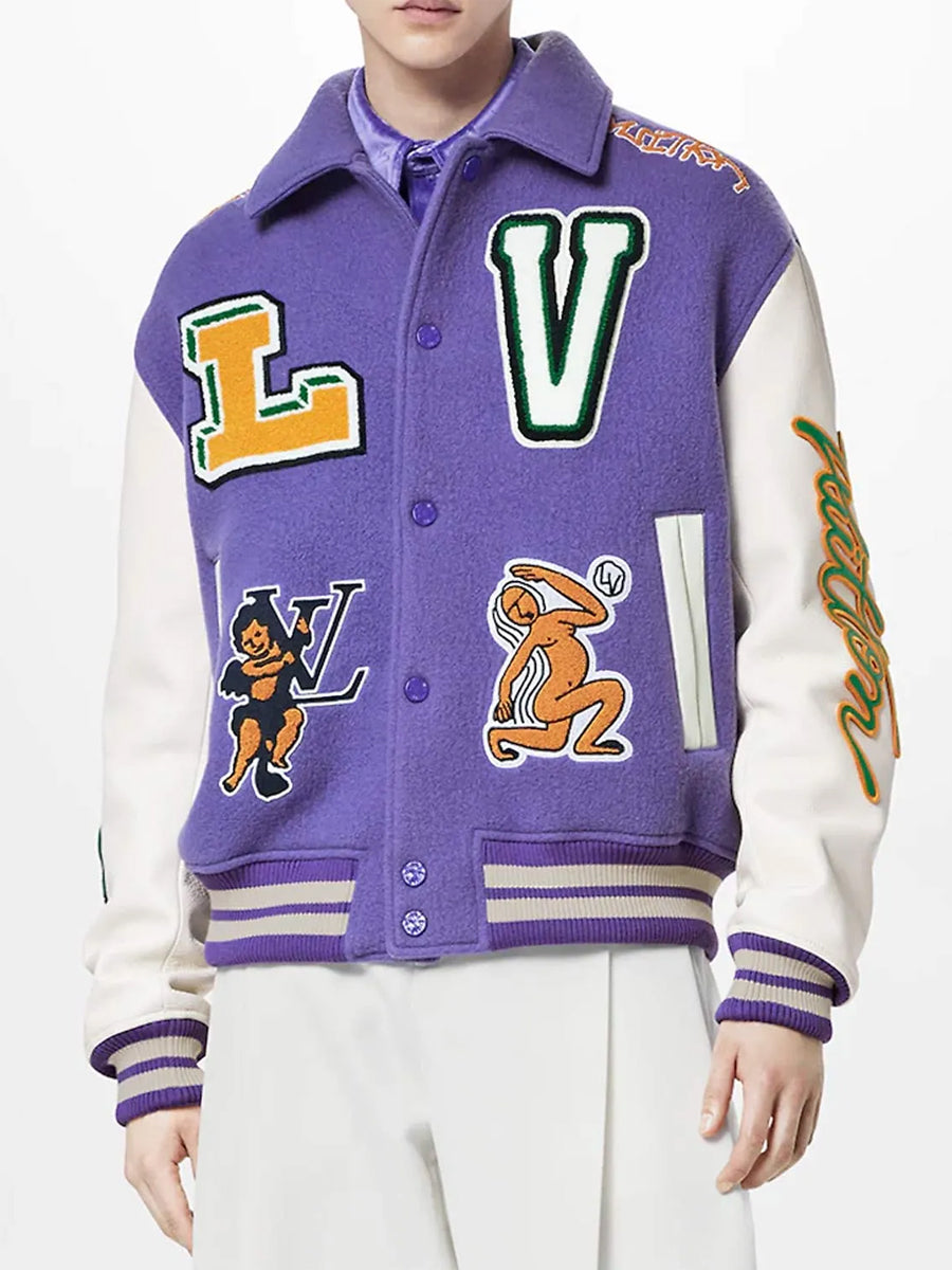 ヴァージル・アブロー×ルイ・ヴィトン パープル バーシティジャケット